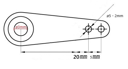 La distance entre l'axe de l'arbre de sortie du servo et les trous varie de 20, 25mm.