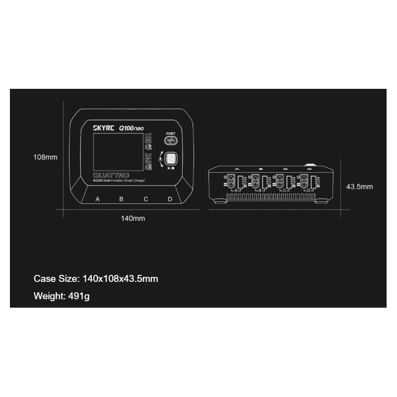 Chargeur Q100neo AC/DC QUATTRO 4X60W SKYRC. + de détailsRéférence 51-100223-02 |