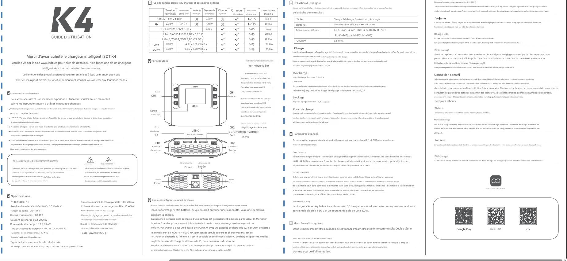 Le chargeur dual K4 permet de charger 2 batteries simultanément que ce soit Lixx 1 à 7S, ainsi que vos batteries Nixx de 1 à 18S ou Plomb de 1 à 14S.