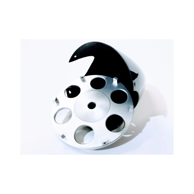 Cône carbone bipale et flasque alu, fixation par vis latérales périphériques.
