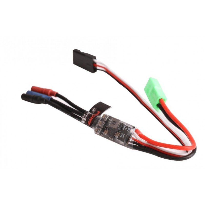 Le T-Hobby AM06A F3P-A est un petit ESC 6A conçu principalement pour les avions d'intérieur. Le poids de l'ESC n'est que de 1,1G sans les câbles. L'ESC peut être alimenté par des batteries Lipo 1-2S. Le BEC 1,5A fournit une tension de 5,2V lors de l'utilisation d'une batterie 2S ou 1S.