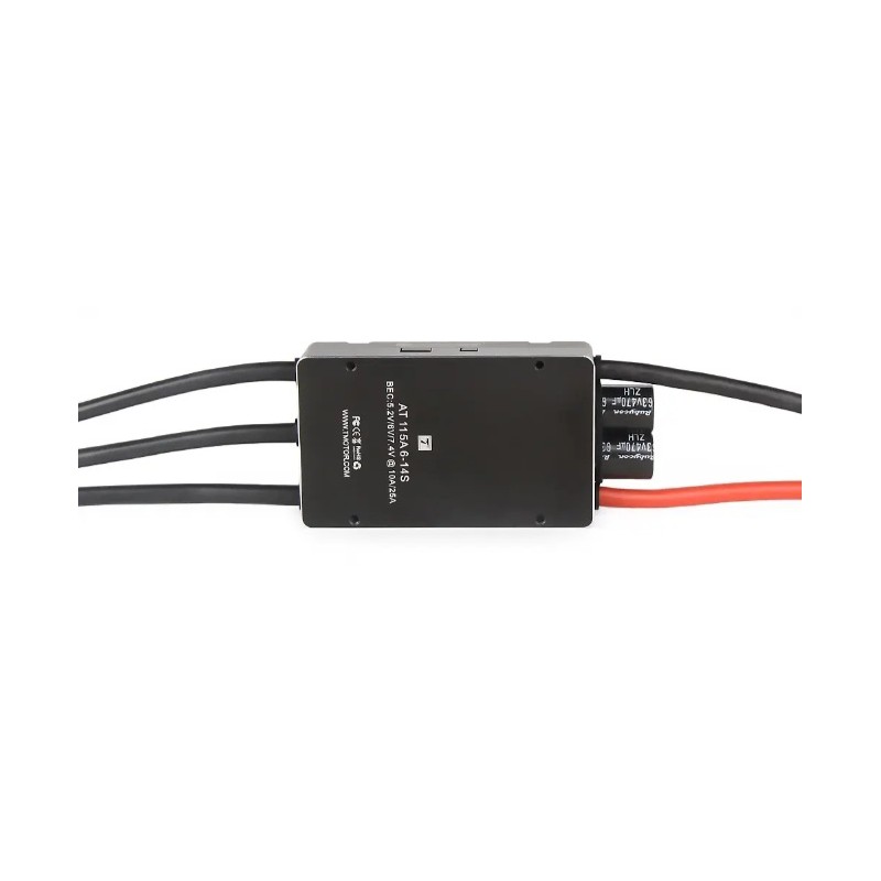 L'AT115A est un contrôleur pour avion avec une solution d'alimentation à découpage, prend en charge les batteries au lithium 6-14S et pèse 182gr.