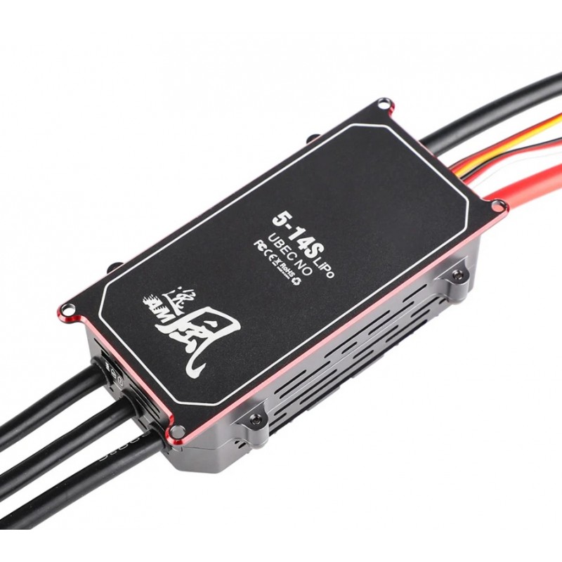 Robuste et performant, il pèse seulement 296g, délivre une puissance de 12,7kW et est compatible avec les alimentations 5 à 14S. Il offre un courant continu de 216A et un courant de pointe de 240A, garantissant un contrôle précis et puissant pour les vols acrobatiques de haut niveau.