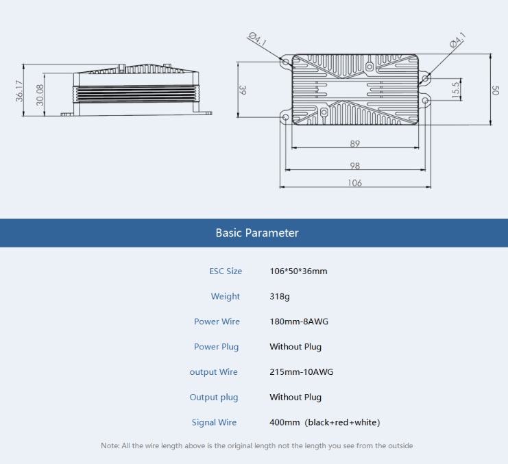 Le courant de pointe maximal est de 240A. Ce dispositif est recommandé pour les avions VTOL d'une envergure de 2,2 à 4,6m et pour l'utilisation de moteurs des séries AT 72 et 80.