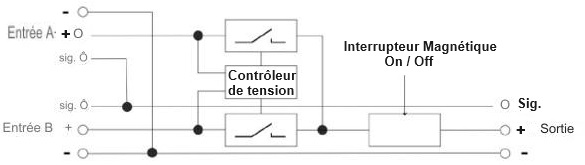 Le module bascule d'une source à l'autre pour alimenter votre récepteur avec la tension la plus élevée. Si vous branchez 2 contrôleurs, le DSM ESC agit comme un cordon Y au niveau des signaux. L'ensemble peut être allumé ou éteint en présentant simplement un aimant devant l'interrupeur magnétique livré avec le DSM ESC.