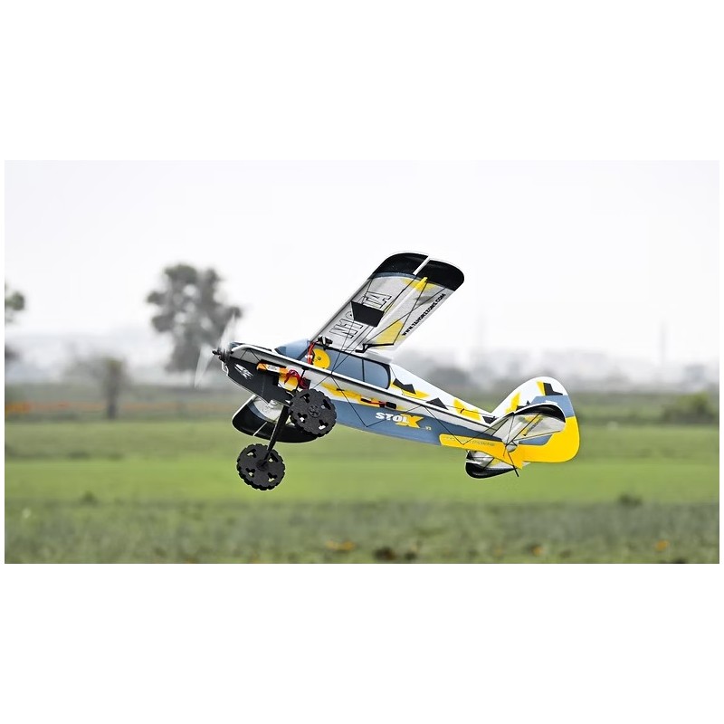 Conçu avec un souci du détail exceptionnel, cet appareil promet une expérience de vol incomparable. Sa structure robuste en EPP de 5 mm lui confère des performances exceptionnelles. Le Stol X V2 est capable de décoller et d'atterrir sur quasiment tous les terrains, grâce à ses roues de grande taille et son train d'atterrissage à suspension souple. Pour un contrôle optimal à l'atterrissage, ses deux ailerons peuvent être déployés en volets, réduisant ainsi la vitesse et la distance de décollage.