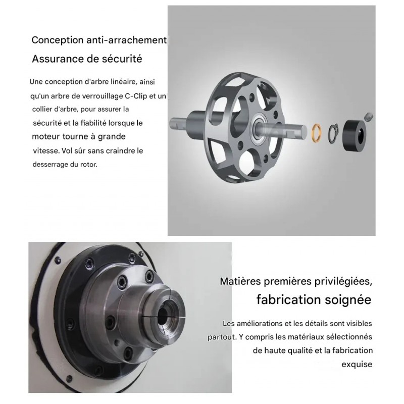 Arbre de verrouillage C-CLIP, pour un vol en toute sécurité sans craindre le desserrage du rotor
