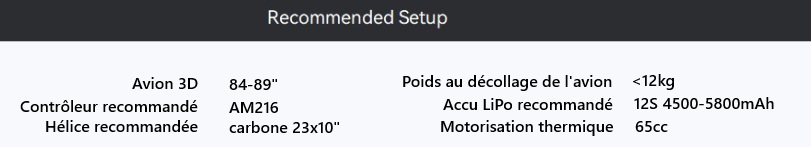Le moteur AM850 est conçu pour les avions 3D de 84 à 89" (55 à 65cc), offrant une agilité, une précision et une puissance exceptionnelles, sans le poids et les contraintes des moteurs thermiques. Son installation est rapide et utilise la même plaque de montage qu’un moteur thermique.