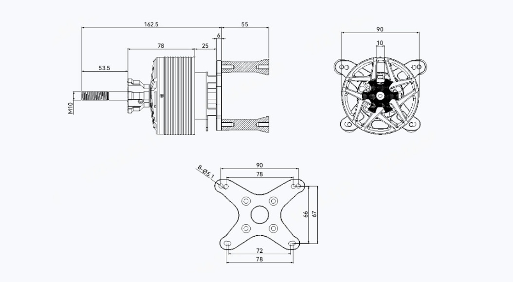 Le moteur AM910 est conçu pour les avions 3D de 89 à 90" (70 à 80cc), offrant une agilité, une précision et une puissance exceptionnelles, sans le poids et les contraintes des moteurs thermiques. Son installation est rapide et utilise la même plaque de montage qu’un moteur thermique.