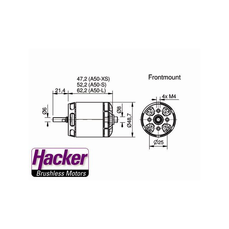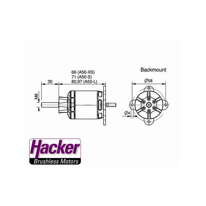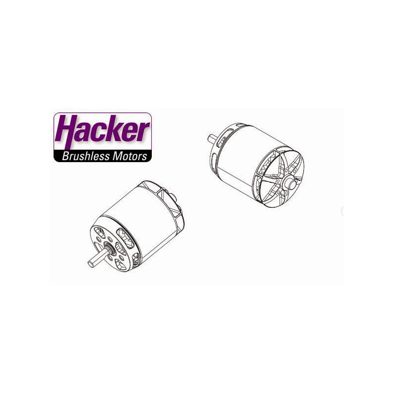 Les moteurs Hacker A50-V4 sont des moteurs à rotor externe 14 pôles dont le rendement a été amélioré grâce à un développement continu. La série A50-V4 est dotée d'un nouveau flasque arrière avec ventilateur, permettant un refroidissement interne encore plus efficace de l'ensemble du moteur. Les différentes longueurs et enroulements permettent une adaptation précise au modèle et une plage de puissance allant jusqu'à 2000 W.