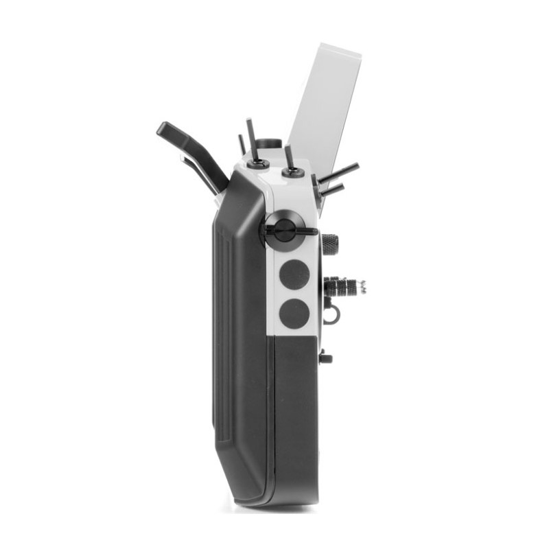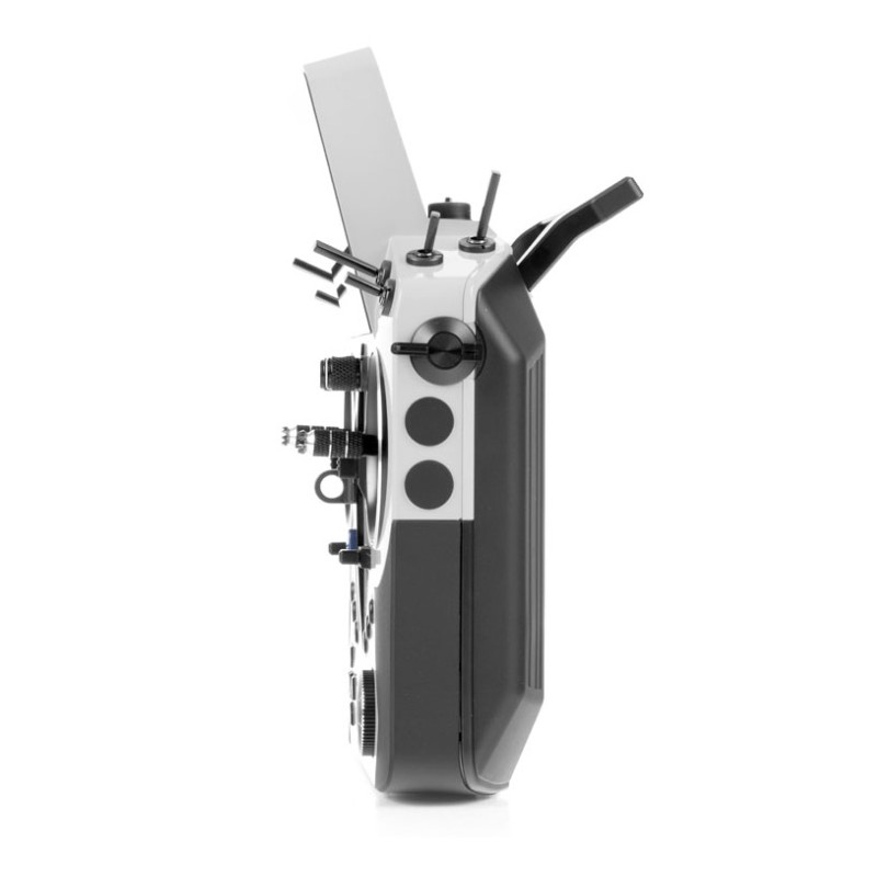 Le boîtier de l'émetteur est robuste et offre une excellente prise en main . Les poignées caoutchoutées sur les côtés et à l'arrière assurent une prise en main ferme, confortable et sûre. Toutes les commandes sont facilement accessibles. Les cardans sont situés près des bords de l'émetteur, ce qui permet une utilisation confortable sans support. Pour une ergonomie optimale, des manches de réglage longs avec interrupteurs sont également disponibles.