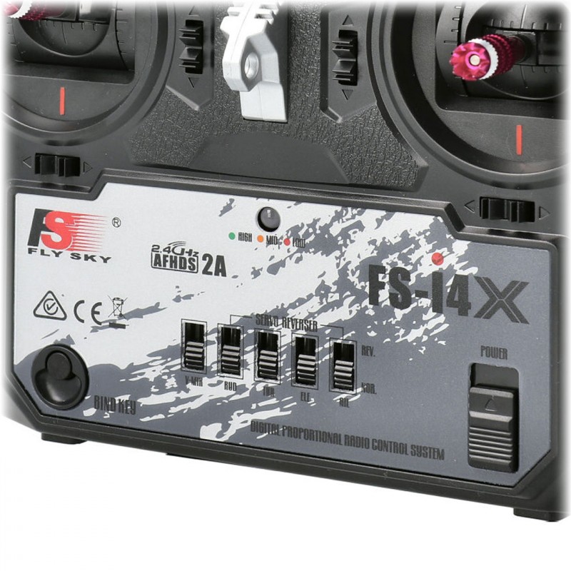 L'émetteur FS-i4X est un modèle classique à 4 voies en 2,4 GHz, idéal pour les débutants souhaitant piloter des avions, des planeurs et des bateaux. Il dispose des fonctions d'inversion et de mixage des voies. Cet émetteur utilise le protocole AFHDS2A et peut prendre en charge jusqu'à 10 voies grâce à des extensions.