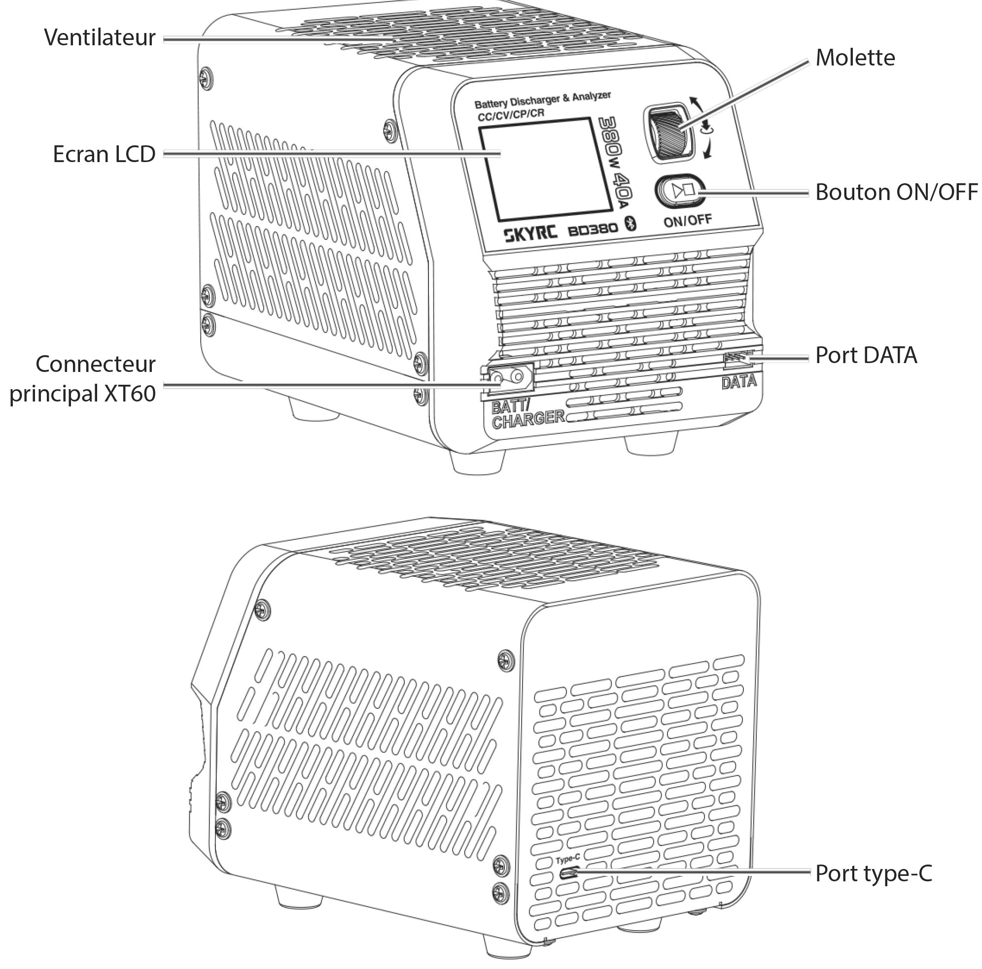 Le BD380 est de construction robuste et il utilise un connecteur XT60 pour le branchement de la batterie.