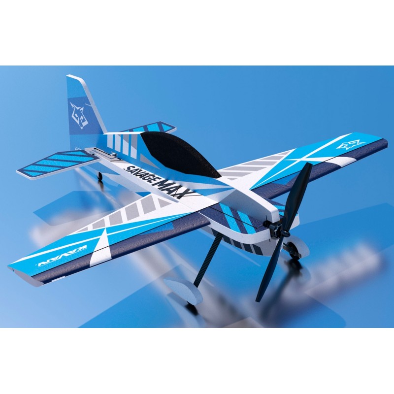 En un rien de temps, avec une bouteille de cyano vous pouvez terminer ce modèle, qui sera capable de faire de la voltige classique ainsi que toutes les figures 3D! SAVAGE MAX n'est pas seulement pour les pilotes expérimentés; il peut être piloté par n'importe quel pilote qui sait déjà faire une boucle, un virage en décrochage et une roulade. Et si quelque chose tourne mal, grâce à son faible poids, il n'y a généralement pas beaucoup de dégâts et même si c'est le cas, la mousse EPP est facile à réparer!