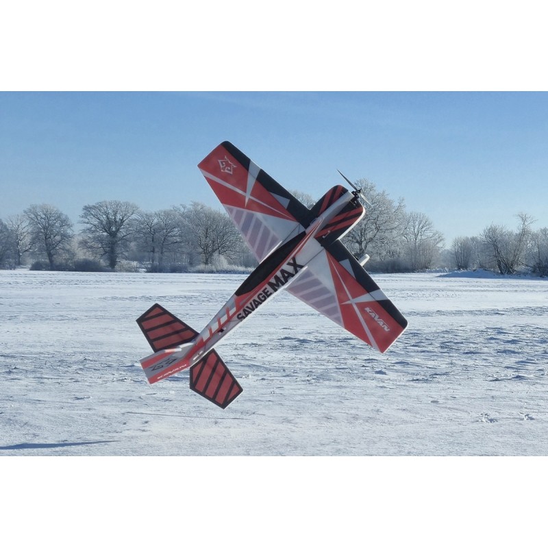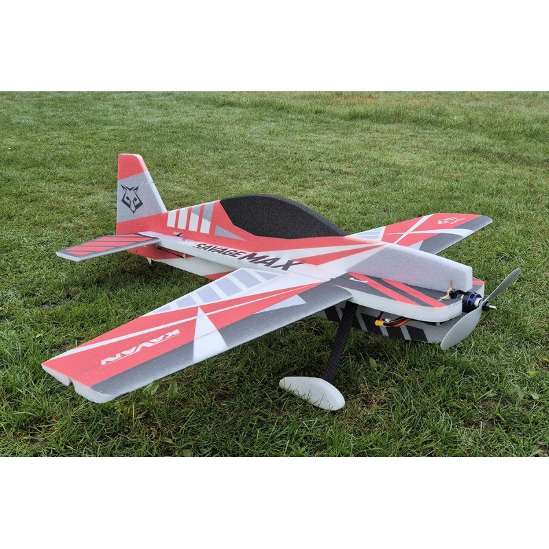 En un rien de temps, avec une bouteille de cyano vous pouvez terminer ce modèle, qui sera capable de faire de la voltige classique ainsi que toutes les figures 3D! SAVAGE MAX n'est pas seulement pour les pilotes expérimentés; il peut être piloté par n'importe quel pilote qui sait déjà faire une boucle, un virage en décrochage et une roulade. Et si quelque chose tourne mal, grâce à son faible poids, il n'y a généralement pas beaucoup de dégâts et même si c'est le cas, la mousse EPP est facile à réparer!