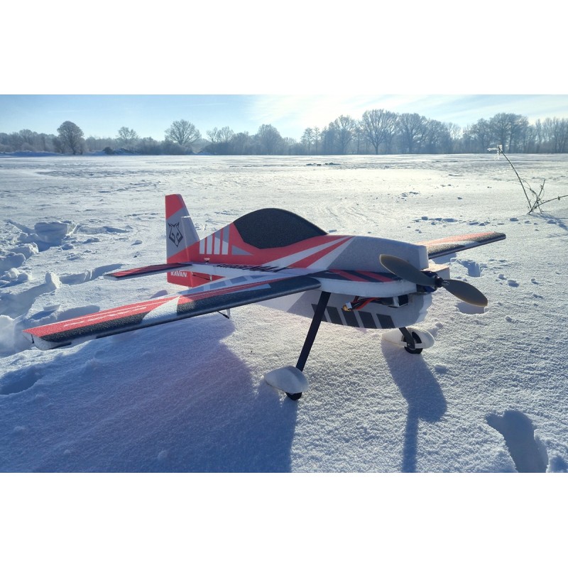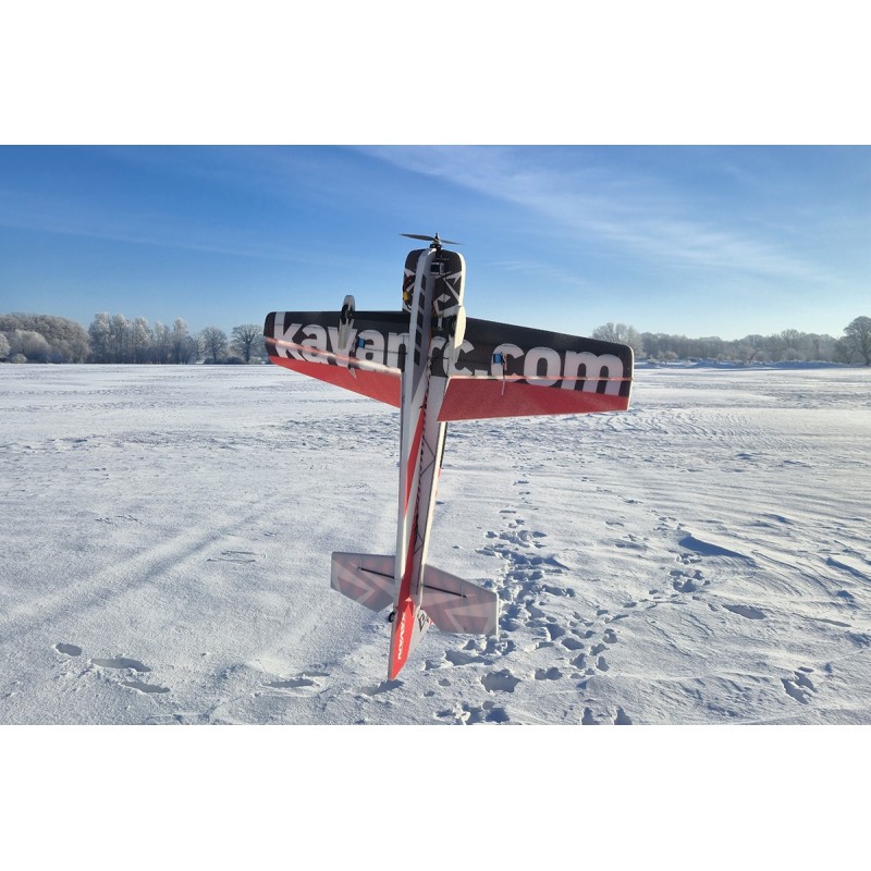 les emplacements prédécoupées sont prêt pour vos servo. Le bâti moteur en contreplaqué est également ancré au fuselage en mousse avec des longerons en carbone. L'empennage est également réalisé en mousse EPP, l'empennage horizontal entièrement mobile sont collées à un tube de carbone qui tourne librement dans des roulements imprimés en 3D dans le fuselage. La tringlerie des gouvernes est composée de charnière imprimées en 3D, de chapes en plastique et de tiges de poussée courtes en carbone ou en acier. Le train principal en carbone avec des roues en mousse légère et carénages de roues en EPP sont fixés par 4 boulons à une plaque en fibre de verre ancrée au fuselage avec des supports en plastique imprimés en 3D. L'ensemble de roue de queue orientable se compose d'un support imprimé en 3D et d'une roue en mousse légère.
