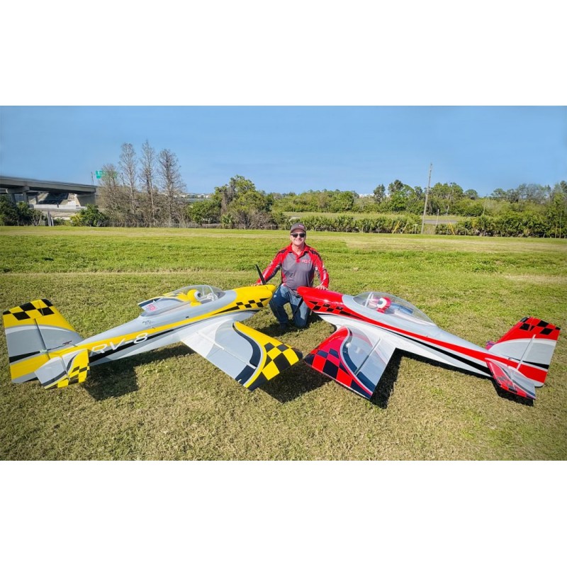 Le RV-8 70cc FLS (FeatherLite Series) est un modèle réduit à 35 % du célèbre Van's Aircraft expérimental RV-8. Le designer et champion du monde Quique Somenzini a adopté une toute nouvelle approche avec la conception du RV-8 70cc FLS. Une cellule massive, avec plus de 130dm² de surface d'aile, qui pèse 10,4kg de poids en vol, offre une cellule si incroyablement légère que vous avez l'impression de voler avec quelque chose de plus léger que l'air. Associez la charge alaire extrêmement légère à la conception clé et aux détails géométriques vous obtenez un avion doté d'un domaine de vol incroyable.