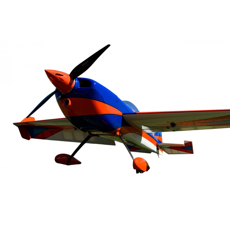 Les ailerons et la profondeur sont pré-articulés et étanches. Cône d'hélice Cyclone de 76 mm inclus. Le capot moteur et les carénages de roues en fibre de verre, peints avec expertise dans deux superbes livrées Ultracote haute visibilité, apportent la touche finale et font de cet avion un appareil dont vous serez fier de vous présenter sur le terrain de vol.