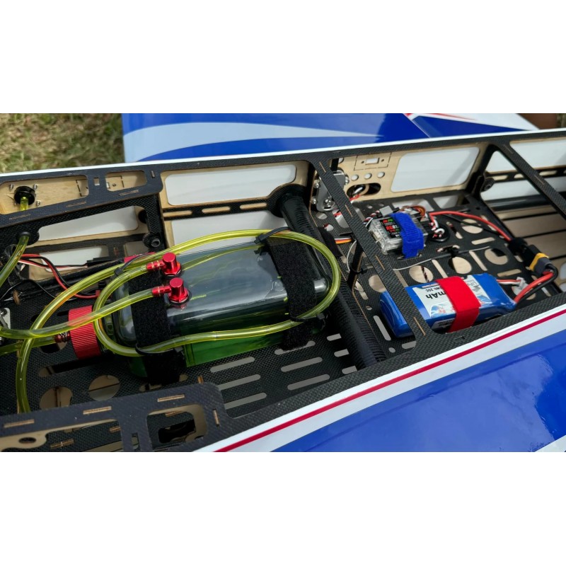 Le modèle 75" 260 est véritablement conçu pour toutes les motorisations : monocylindre essence 35CC, bicylindre essence 40CC et électrique 12S. Tous les moteurs s'intègrent parfaitement au capot, y compris les bicylindres 40CC à allumage direct, et sont fournis avec la tringlerie d'accélérateur et les pièces de refroidissement adéquates. Fini les montages bricolés ! Tout est prêt à l'emploi.