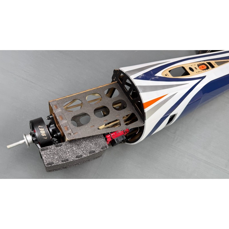 Ailerons et gouvernes de profondeur articulés et scellés en usine, train d'atterrissage et empennage en fibre de carbone, tableau de bord pré-installé dans la verrière transparente.