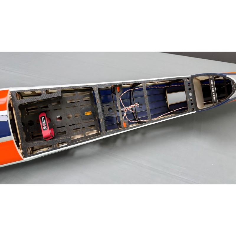 Ailerons et gouvernes de profondeur articulés et scellés en usine, train d'atterrissage et empennage en fibre de carbone, tableau de bord pré-installé dans la verrière transparente.