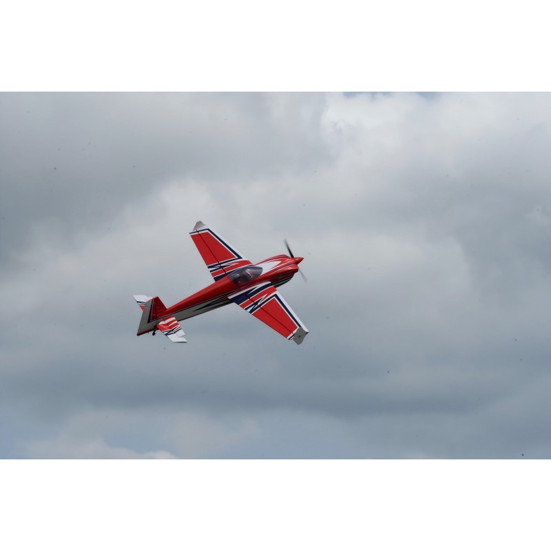 Avec cône d'hélice assorti, réservoir de carburant, buste de pilote, durite de carburant, housses pour les ailes et profondeur, ainsi que des extensions de haute qualité préinstallées.