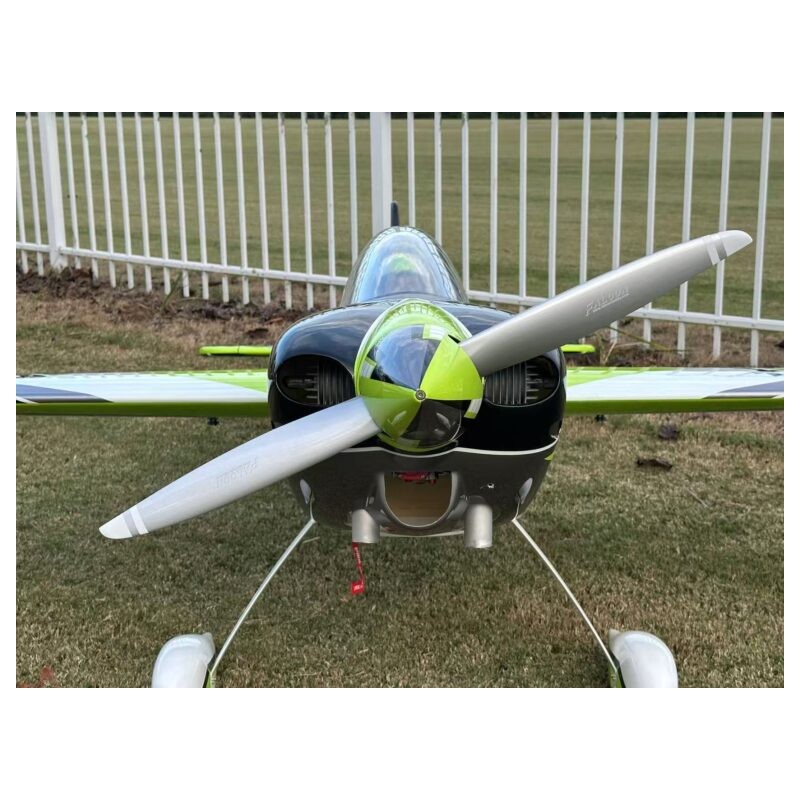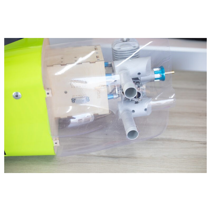 Construit avec une structure entièrement en contreplaqué, en fibre de verre et en fibre de carbone, à l'instar de nos avions 3D actuels, il est conçu pour la performance. Après de nombreux tests et améliorations de conception, nous avons optimisé ses caractéristiques de vol.