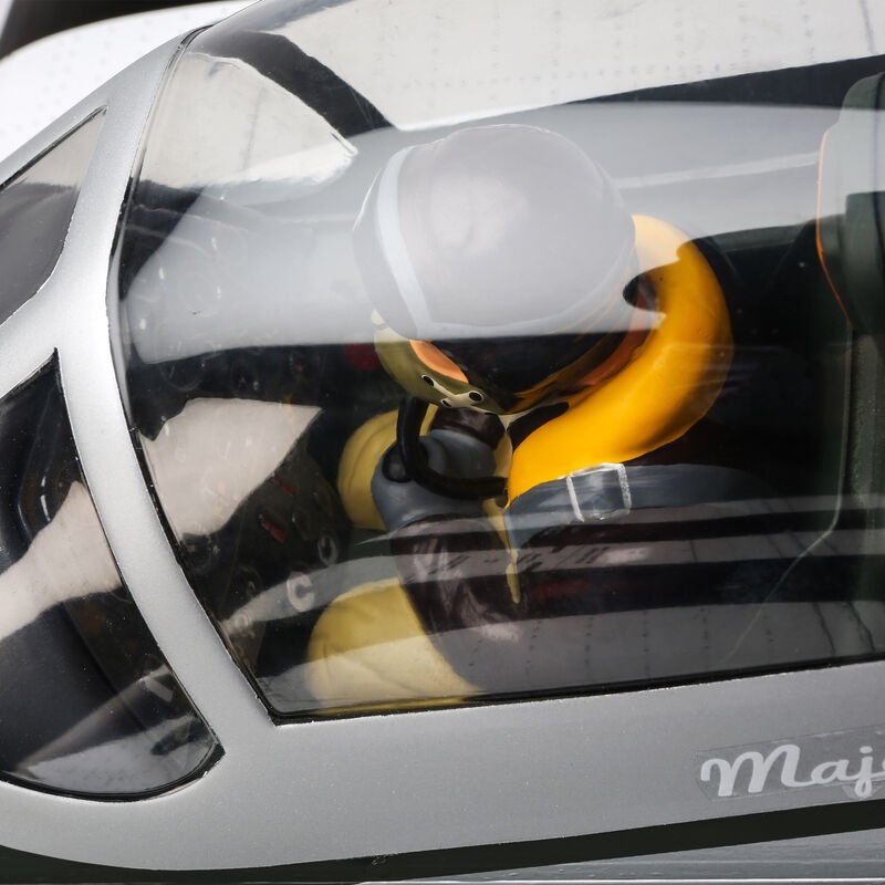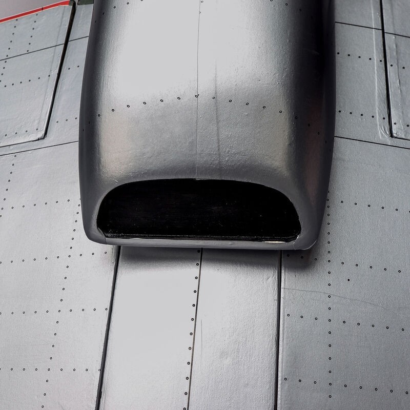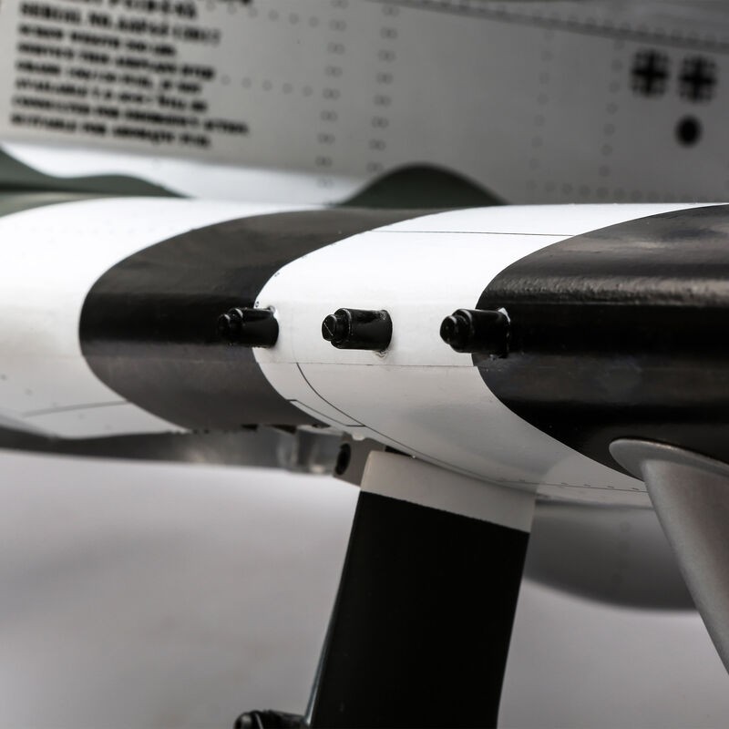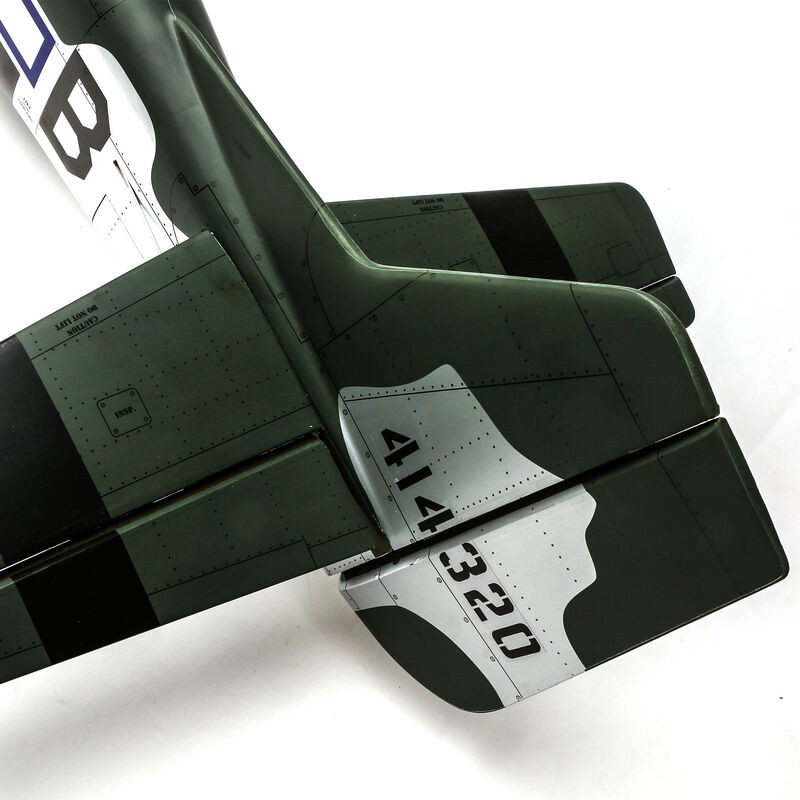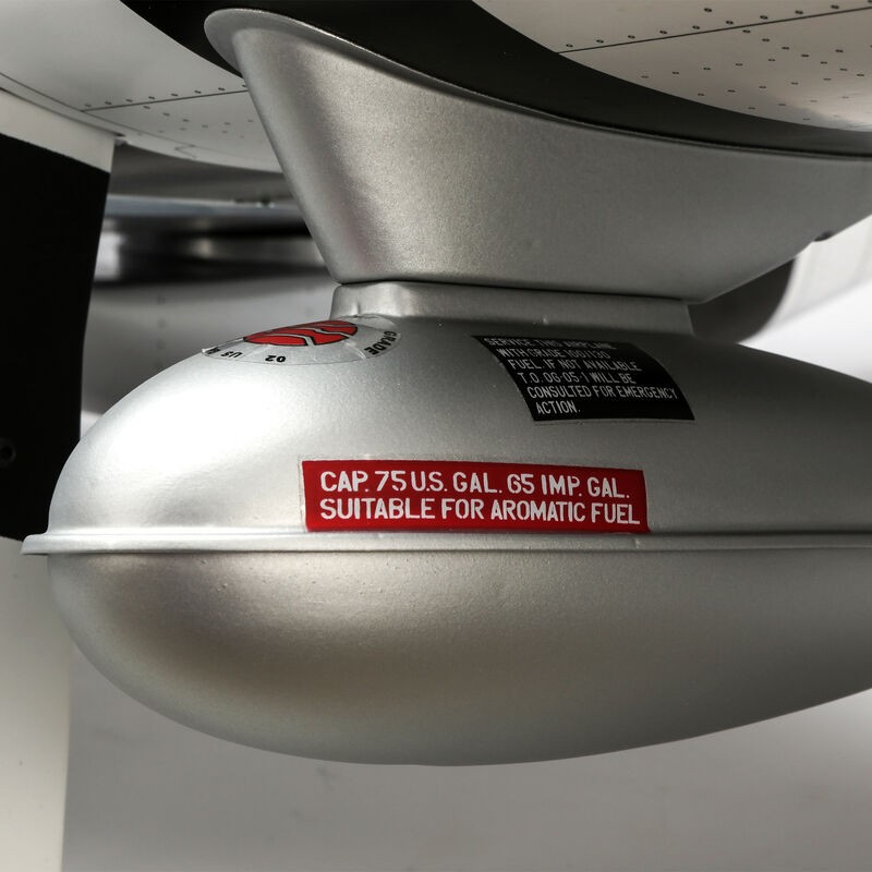 Parmi les détails les plus remarquables, on trouve le revêtement satiné de la cellule, appliqué avec expertise. Ce matériau léger reprend de nombreuses caractéristiques à l'échelle comme: capturant les ligne des panneaux, les rivets. Inscriptions et couleurs distinctives, lui confèrent une superbe apparence et robustesse. Un cockpit bien équipé avec tableau de bord 3D, une figurine de pilote peinte minutieusement et un compartiment utilitaire renforcent encore davantage son authenticité. Le capot modernisé avec sa forme plus réaliste, présente une finition avec des entrées d'air et d'échappement, cône d'hélice, tous assortis. Des réservoirs d'aile optionnels peuvent être fixés sur les pylônes d'aile inclus ou retirés pour améliorer la maniabilité à grande vitesse. Les jambes de force du train d'atterrissage sont amorties et équipées d'essieux avec un espace suffisant pour ces grandes roues qui facilitent le décollage depuis l'herbe.