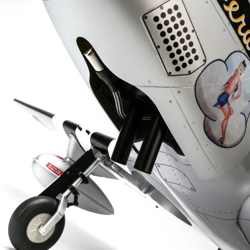 Quel que soit l'angle sous lequel on le regarde, ce Mustang est un modèle impressionnant pour sa taille. Ses ailes en deux parties s'intègrent harmonieusement au carénage et à la prise d'air distinctive. Les gouvernes présentent un profil aérodynamique pour un vol plus fluide et les points de fixation des charnières sont percés en usine pour une installation facile. Pour une expérience encore plus poussée, remplacez le robuste train d'atterrissage fixe par des trains rentrants électriques E-flite® disponibles pour le train principal et la queue (NON INCLUS). Les volets fonctionnels permettent une enveloppe de vol plus large, avec des décollages plus courts et des vitesses d'atterrissage plus lentes.